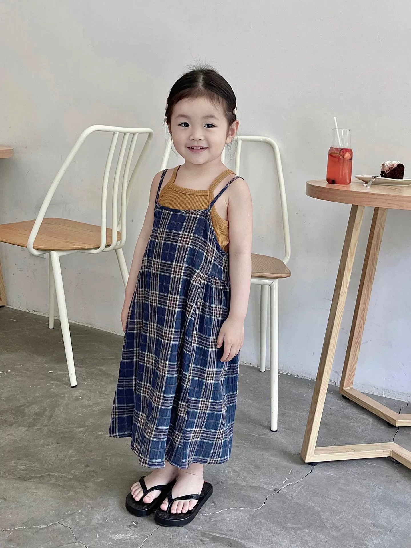 格紋背心裙可以搭配背心、T恤或內穿一件牛仔褲,多元的層次穿搭,非常日系可愛喔~