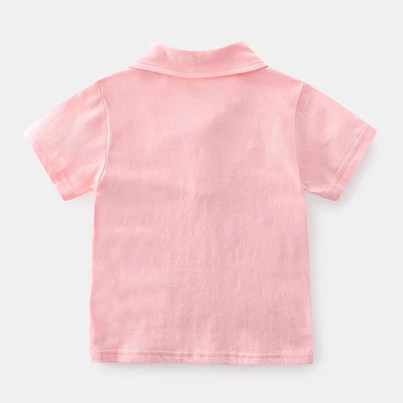 精梳棉材質柔軟親膚舒適透氣,左胸口搭配可愛印花,每天換一種顏色和心情,是小寶貝夏天半正式服裝首選喔!