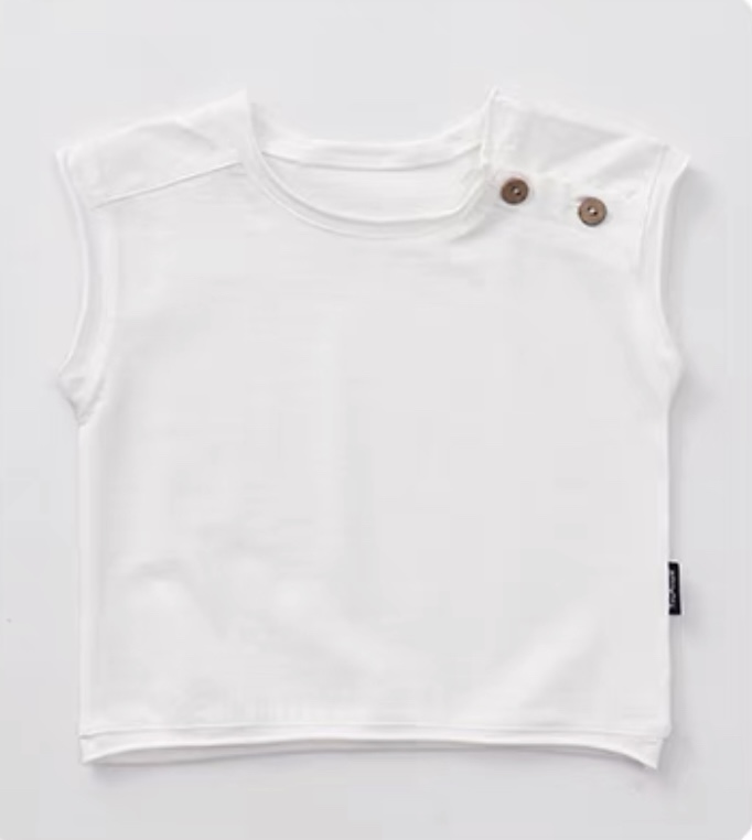 舒適透氣的素色竹節棉料,搭配左肩鈕扣、不收邊設計